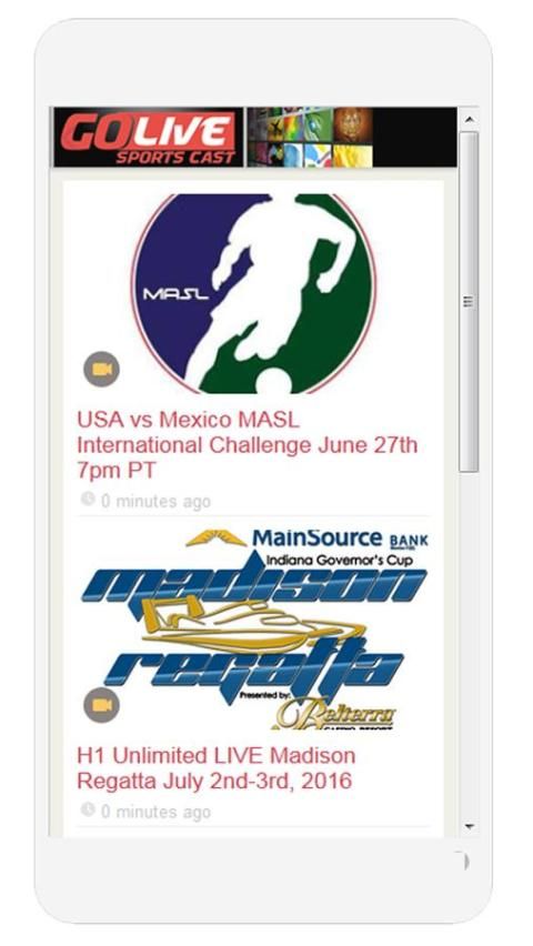 مشاهدة الفيديو الحية والمحفوظة الرياضية من المروجين للمحترفين والهواة الرياضية الدولي والأميركي. نبث الموالية الحية والفيديو للهواة الرياضة تحت بوابة المصبوب العودة لايف الرياضية. وتتضمن الفعاليات برو الساحة لكرة القدم (MASL)، الملاكمة ومجلس العمل المتحد، وH1 رياضة السيارات الطائرة المائية غير محدودة. كرة القدم والهوكي (ACHA) وكرة السلة وغيرها من الألعاب الرياضية. يتم تصنيف MMA والملاكمة PG 14 V