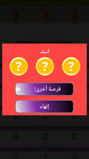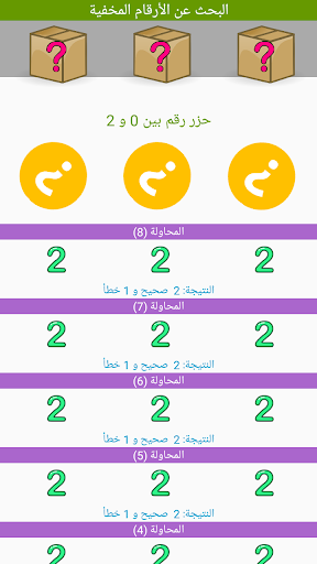 - يعرض البرنامج 3 صناديق تخفي 3 أرقام.