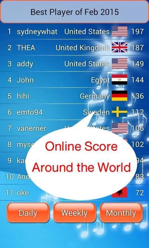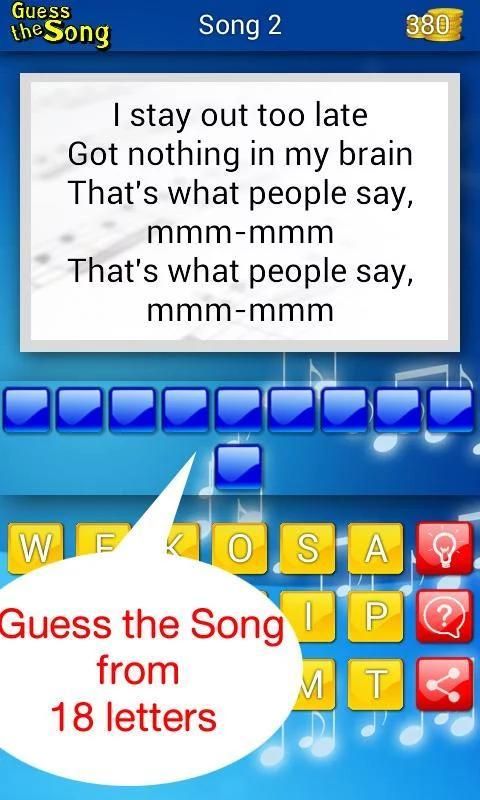 تخمين كلمات هي اللعبة التي تمكنك من قراءة غنائي وتخمين أغنية مع 18 رسائل ومشاهدة على الانترنت الموسيقى والفيديو.