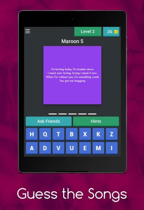 سوف يتم عرض كلمات أغنية معينة وصاحب أغنية، لديك لتخمين عنوان أن أغنية معينة.