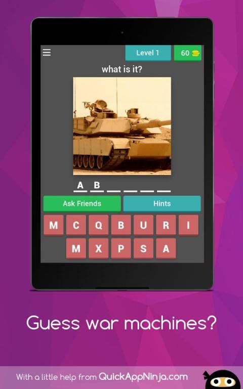 9Apps يقدم تحميل apk تطبيق اندرويد مجانا 20,000+ مستحدمين يحملون Guess war machines? احدث الاصدار مجانا كل أسبوع في حين تقوم بالنقر ،يبدأ التطبيق يحمل وتنتظر قليلا حتي انتهاء التثبيت فيمكنك تستخدم..9Apps هذه التطبيق الحلوووه تصدر في 2016-12-01 يتلقي التقدير الكثير بعد اطلاقه..
