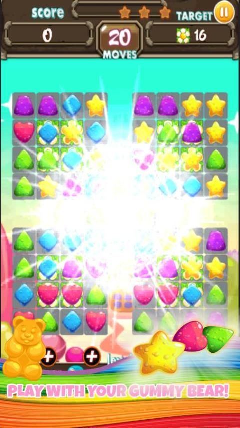 عن وجود متعة اللعب غائر سحق تحتاج لتتناسب مع الدببة غائر والحلوى لذيذ من خلال إنشاء خطوط أو الصفوف من نفس لون الحلوى، وإذا كنت مباراة أكثر من 3 تحصل البرق الدببة مكافأة غائر من شأنها أن سحق على التوالي الكامل أو خط إذا كنت مباراة لهم.
