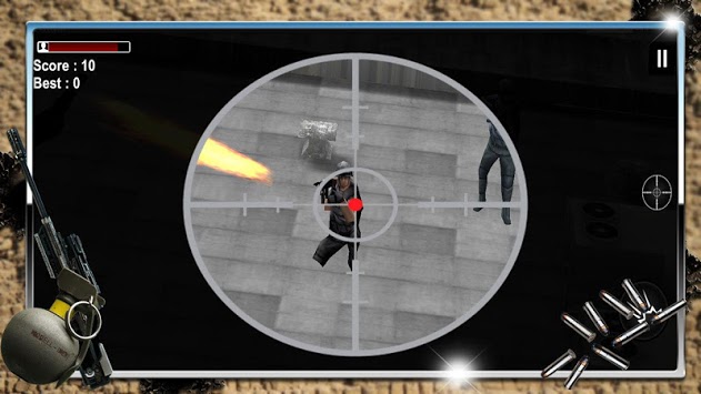 تم القبض عليه المدينة بأكملها من قبل الإرهابيين. المواطنون يريدون التخلص من الإرهابيين الدموي. الطريقة النهائية لاستعادة المدينة هو استخدام أباتشي مروحية جنبا إلى جنب مع الرماة قناص. كنت الأكثر خبرة قناص مطلق النار. سوف مروحية يأخذك إلى المدينة. مهمتك هي لقتل واطلاق النار على كل إرهابي واحد مع بندقية قنص الخاص بك بينما كان يجلس في مروحية أباتشي. تم تجهيز عدوك أيضا مع الصواريخ المضادة للطائرات وصواريخ ستينغر. يكون على بينة من هؤلاء الأشخاص الذين مجهزة بأسلحة ثقيلة واطلاق النار عليهم أولا قبل ان يطلق النار عليك وطائرات الهليكوبتر الخاصة بك. إبقاء العين على ساحة المعركة كلها. لديك لكسب هذه الحرب من أجل تحسين وحياة المواطنين الأبرياء. يجب عليك البقاء على قيد الحياة ويعيش في المعارك لأنك فقدت الأمل للمواطنين.