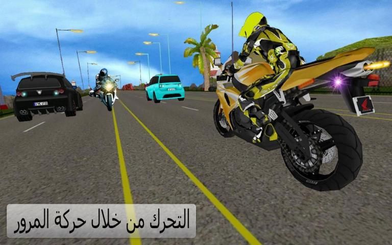 قيادة الدراجة الخاصة بك حيلة من خلال مسارات ناعمة على مسارات مذهلة من الطريق السريع من خلال حركة المرور الاندفاع. الدراجة حيلة لكمة متسابق هي لعبة بسيطة جدا الادمان متسابق. كما الطريق السريع الدراجة حيلة متسابق، يمكنك اختيار المفضلة لديك حيلة دراجة قوية والبدء في سباق الدراجة حيلة. بدء سباق الدراجة حيلة يتبع قواعد إشارات المرور وركوب الخيل سريع جدا حيلة الدراجة والنجاح في السباق. تجنب، حركة المرور الكثيفة على الطرق السريعة وغيرها من الدراجات النارية كاملة. استكمال المهمة التي تستهدفها وجمع النقاط والأرقام لفتح بسهولة مستويات عالية رائعة. في هذه اللعبة، يمكنك أيضا إكمال المهمة التي تستهدفها للوصول إلى نقطة وجهتك أو نقطة الفوز، وقتل أو ضرب الخاص بك الذكية القاتل الدراجة حيلة العدو المهاجم، لا سحق أي المركبات والحواجز على الطرق. إذا كنت أصاب أي عقبات الدراجة سيتم فشل مهمتك وسيكون لديك لبدء مهمتكم إعادة تشغيل مرة أخرى.