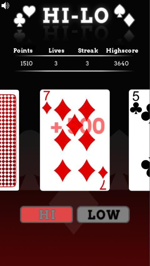 وهناك لعبة بطاقة الصعبة ويسير بخطى سريعة للجميع. هدفك هو تخمين إذا كانت بطاقة التالي هو أعلى أو أقل ثم البطاقة الحالية.