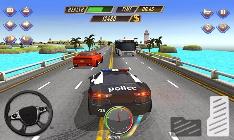 كاليفورنيا معدل الجريمة في تزايد مستمر مع قضية جنائية مثل سرقة السيارات، سرقة بنك وسرقة الأنشطة الإجرامية المال. وقد اتخذت عصابات اسباني حكم كاملة من المدينة الحضرية. تصبح ضابط شرطة للانتقام من قطاع الطرق أندرياس وإنزال المافيا الإمبراطورية. وصول الى سيارة الشرطة والاندفاع، مطاردة وسحق السيارات الجنائية على الطريق السريع. في هذه الشرطة واللص لعبة القتال محاكاة، ملاحقة المجرمين المطلوبين وترتفع مع بطل شرطي في المدينة الجريمة. المجرمين سيارة الشرطة مطاردة الذين يشكلون تهديدا لحياة المدينة. شرطة الطرق السريعة ضد سرقة السيارات هي أفضل مزيج من الألعاب الشرطة الأكثر تحديا ومطاردة السيارات الجنائية. ضرب المنتخب الجنائي مع سيارات السباق ولكن لا تقتل أي المشي المشاة الأبرياء على الرصيف. الصحافة تسريع دواسة لزيادة سرعة سيارة للشرطة واعتقال البلطجية العصابات بدس. كضابط إنفاذ القانون صادقين، والرمح لا يرحم لا يرحم المجرمين المتورطين في جرائم الشوارع ولكن حذار من هجوم مضاد من القديسين المافيا الذين سوف تتخذ كل الإجراءات اللازمة لتدمير السيارات مطاردة الشرطة. حملة يسير بخطى سريعة سيارة متسابق إلى الدقة المتباهي القيادة في شرطي تحطيم السيارات الجنائية. قسم شرطة الطرق السريعة لديه توقعات قوية منك، مطاردة شرطي وتأمين فرقة العصابات قبل أن يتمكن من الهرب في السيارات سرقة السيارات فائقة السرعة.