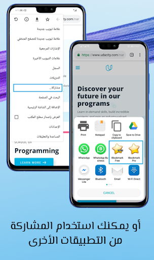 للحفاظ على روابطك المفضلة منظمه، ما عليك سوى مشاركة روابطك من التطبيقات الأخرى واختيار IBookmark من قائمة التطبيقات.