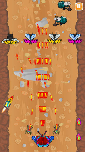 * أول 50 مستوى لمس الشاشة لقتل الحشرات وإطلاق الفراشات والتأكد من إنهاء الحشرات قبل نفاد الوقت والرصاص