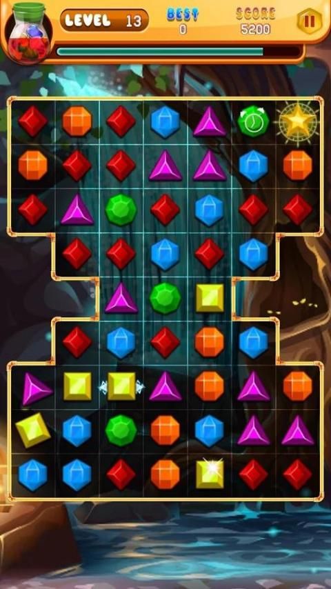 المباراة 3 أو أكثر جوهرة متطابقة في صف واحد لإزالة الخلايا.