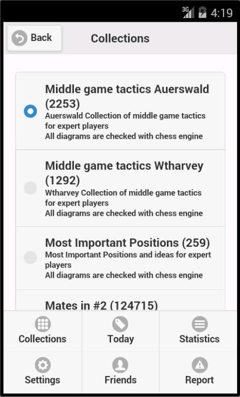♜ مجموعات تحتوي ماتي في 1، ماتي في 2، ماتي في 3، Endgames الألغاز، والتكتيكات الألغاز، وفتحات الألغاز والدراسات والمشاكل الشطرنج