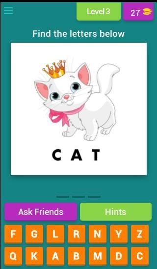 لعبة و / أو التطبيق هو تصميم لتحديد الحروف وفي نفس الوقت ندرك الصورة.