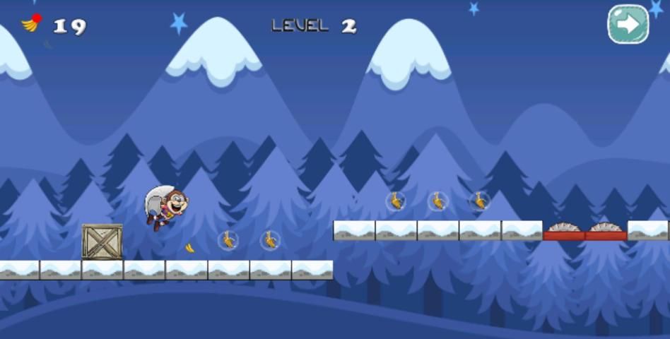 السماح للتشغيل qnd قرد اللعب في الغابة وكسر الصخور من خلال جمع وشكا من السلطة أو القفز عليها، وأنها سوف تقتل لك إذا كنت على اتصال بهم. الحصول على عنصر جذب لجمع الكثير من الموز، ولكن كن حذرا بعض أنماط حساسة.