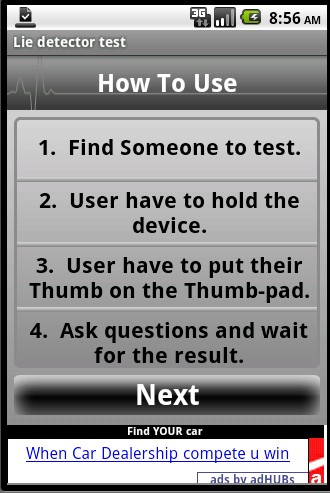 Are you looking for some free apps? 10,000+ users downloaded Lie detector test latest version on 9Apps for free every week! In my opinion, you will like this app after use it. This hot app was released on 2013-02-07. You can quickly get it from 9Apps!