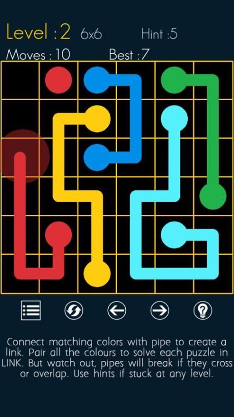 ربط الألوان مطابقة مع أنبوب لخلق Flow®. الزوج كل الألوان، وتغطي المجلس بأكمله من أجل حل كل لغز في التدفق الحر. لكن احترس، فإن الأنابيب كسر إذا عبورهم أو تتداخل!