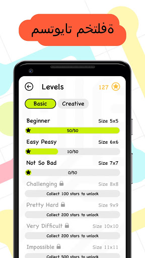 درب عقلك خطوة بخطوة! ابدأ باللوحات البسيطة القليلة وانتقل إلى المستويات الأكثر تفصيلا!