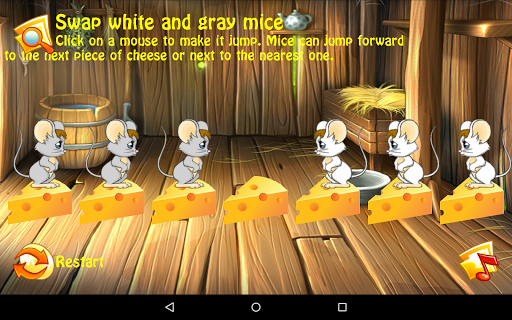 انقر فوق الماوس لجعله يقفز.يمكن للفئران القفز إلى الأمام إلى القطعة التالية من الجبن أو بجانب أقرب واحد.