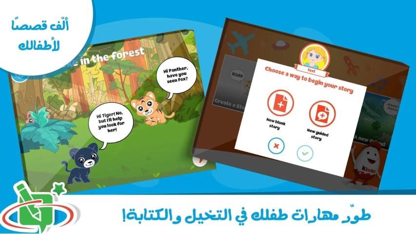تطبيق مجاني من السهل استعماله وممتاز من أجل خلق قصص جميلة جداً، مع شخصيات من مجموعة Magic Kinder. اخلقوا سوياً قصص طريفة وشخصية، ابتداء من "كان يا مكان" حتى النهاية. اختاروا من مجموعة واسعة من الخلفيات، شخصيات طريفة ولوازم تسمح لكم من أن تعيشوا تجربة فريدة لا تنسوها مطلقاً.