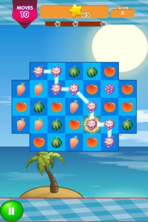 الحصول على نقطة بمحو الفاكهة. يمكنك جعل سلسلة طويلة من الفاكهة للحصول على المزيد من النقاط!