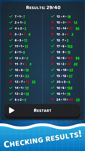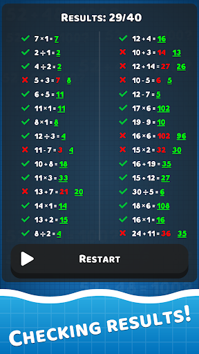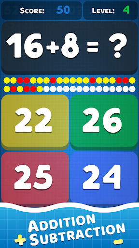 وبالطبع للبالغين أيضًا.الجميع يحب الرياضيات.هذه لعبة الرياضيات مفيدة لتعلم إما حل المشكلات الأساسية أو تدريب عقلك على مهارات الرياضيات الحسابية العقلية أو التدريس لطفلك.تعلم وضع الرياضيات ، فأنت غير محدود مع مرور الوقت وبعد الجلسة ، يمكنك التحقق من نتائجك في جدول.