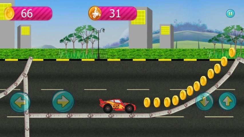 كان هناك سباق سباق مع سيارة سباق ماكوين. من خلال إيقاع الحصول على أكبر عدد ممكن من القطع النقدية لشراء الساحة أكثر تحديا.