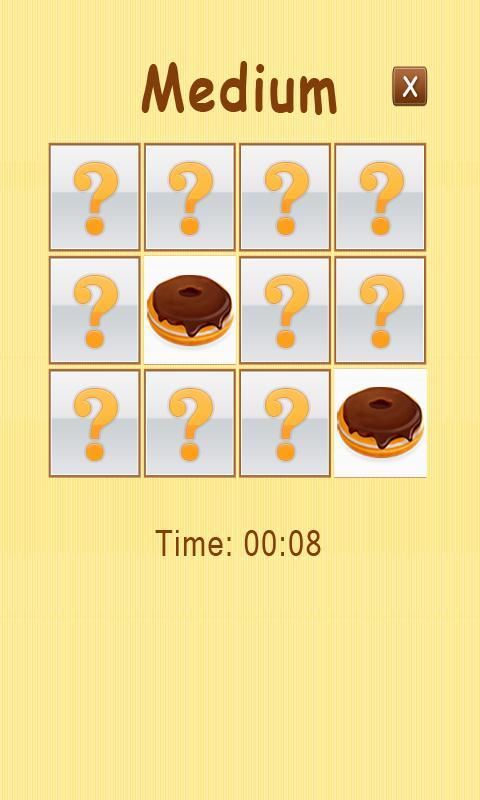 لعبة الذاكرة - حلوى هي لعبة الذاكرة لطيف للأطفال. لعبة الذاكرة - معجنات يمكن أن تساعد على تحسين الذاكرة ابنك وقدرة الدماغ. حكم هذه اللعبة هو بسيط: استغلال لقلب الصور المعجنات ومضاهاتها. يتم على عجل لأن هذه اللعبة سوف يسجل اللعب وقتك، وإذا كنت سريع بما فيه الكفاية، فسوف جعله على متن درجة عالية زعيم.