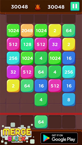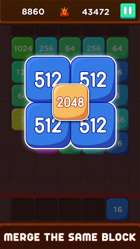 • دمج البلاط كتلة مع نفس العدد إلى 2048