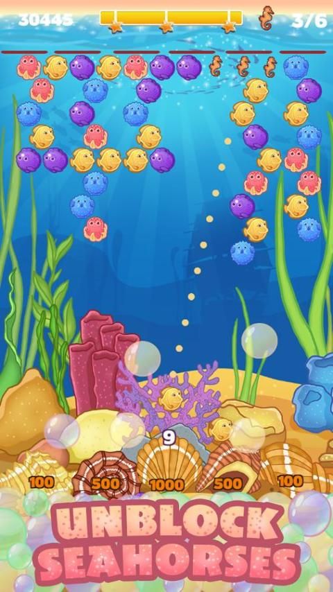 الذهاب على طول البحر الجميل والبحث عن مغامرات جديدة في الوقت الذي تسعى هدفك من الحصول على الكنز حورية البحر! هدف واطلاق النار على الأسماك، إلغاء الحظر فرس البحر والحظر شل مع لؤلؤة! انها متعة ليس فقط وبهيجة للعب هذه اللعبة، ولكن أيضا صعبة للغاية! هذه اللعبة هي أيضا ممارسة جيدة لتحسين التفكير المنطقي للعثور على أفضل وسيلة ممكنة لاطلاق النار على فقاعات مع إضافة الاسترخاء موسيقى الآلات سيكون مريحا جدا للعب في وقت فراغك!