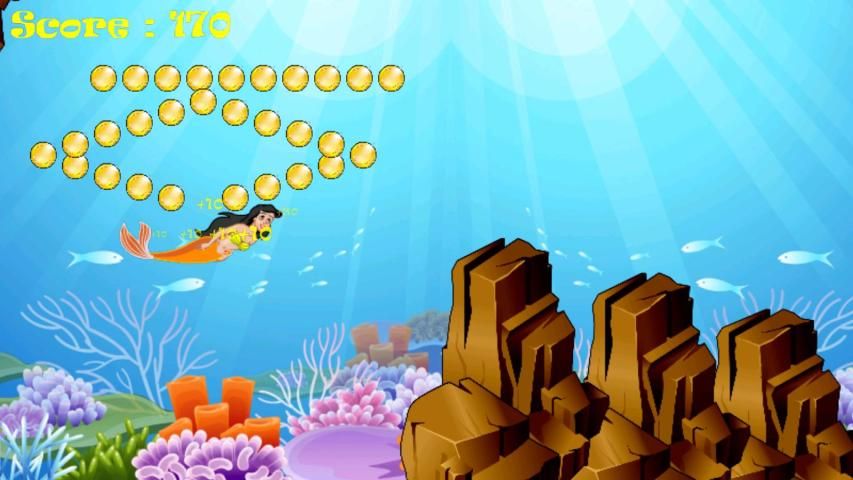 لجعله ممكنا، لمس الشاشة والتحكم في حركة حورية البحر صعودا وهبوطا لتجنب سمك القرش والعقبات.