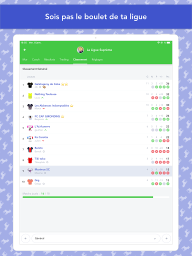 تحدي صديق كل أسبوع مع فريقك الذي تم بناؤه على بطاقة العطاء (500 مليون يورو) ويفوز ... إذا لعب اللاعبون بشكل جيد في الحياة الحقيقية.