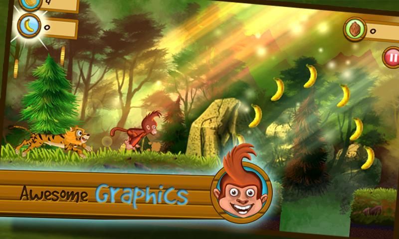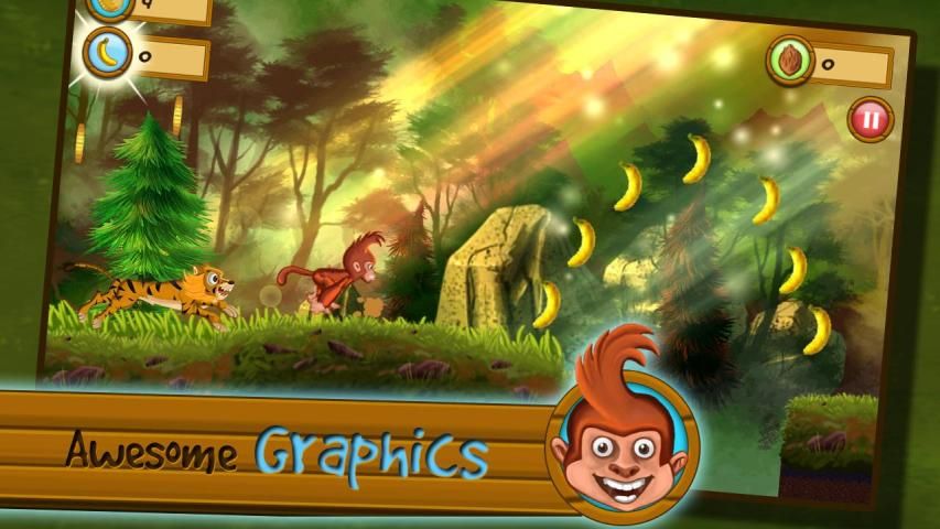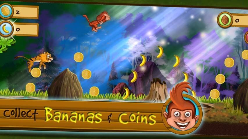 Collect Bananas, Coconuts and Coins to make your survival easier. Bananas give you energy. Dropping Coconuts on tigers earn you some extra coins. And finally Coins help you buy some amazing stuff that further eases the gameplay.