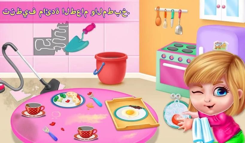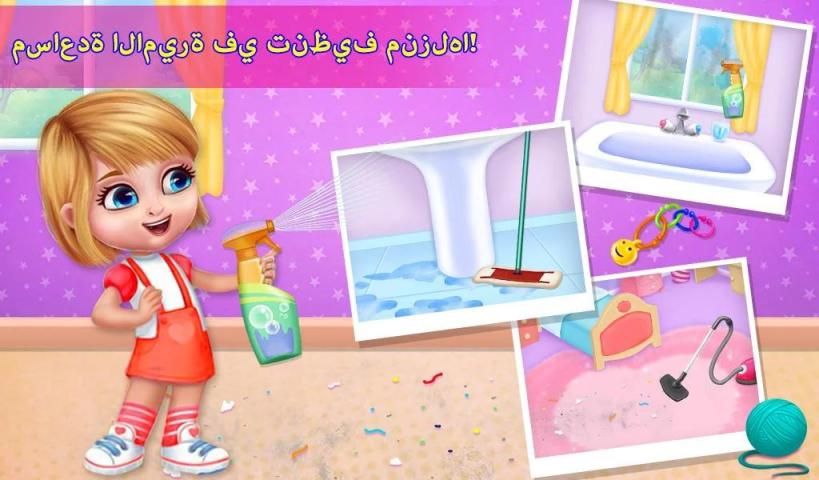 تلبية الأميرة دينا القليل في منزلها ويساعدها على تنظيف المنزل. اختر من خمس غرف مختلفة لتنظيف كبيت كبير ويحتاج الى مساعدتكم. نبدأ مع الحمام حيث لديك لتنظيف الأرض وجعله تألق على أنها جديدة. يمكنك أيضا الاستمتاع بحمام فقاعة مع الكلب فريدي. بعد الانتهاء من الحمام عليك أن تذهب إلى غرفة النوم فوضوي لتنظيفها. وضع الألعاب في صندوق، فراغ الكلمة، وإصلاح الجدار وتزيين غرفة نوم الاميرة. ثم انتقل إلى المطبخ وغسل الأطباق، تنظيف الطاولة، إصلاح البلاط المكسور، وكذلك تزيين لهم. عندما يكون كل شيء أنيق ونظيف، ثم انتقاء الدهانات الكمال، وتزيين غرفة الأميرة. لعب والتمتع هذا البيت لعبة تنظيف ومشاركتها مع أصدقائك.