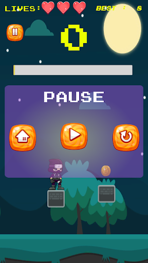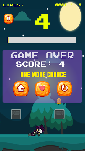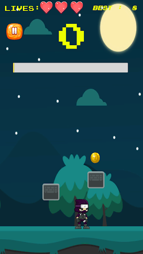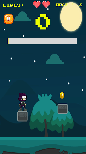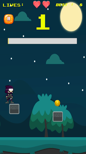 فتاة صغيرة أكملت فقط تدريب النينجا.يمارس الآن في الخارج في الليل بينما لا يوجد أحد لرؤيتها.إنها تريد أن تذهب بقدر ما تستطيع الذهاب عن طريق القفز.إنها لا تريد أن تقع وكسر عظامها.يمكنك مساعدتها؟