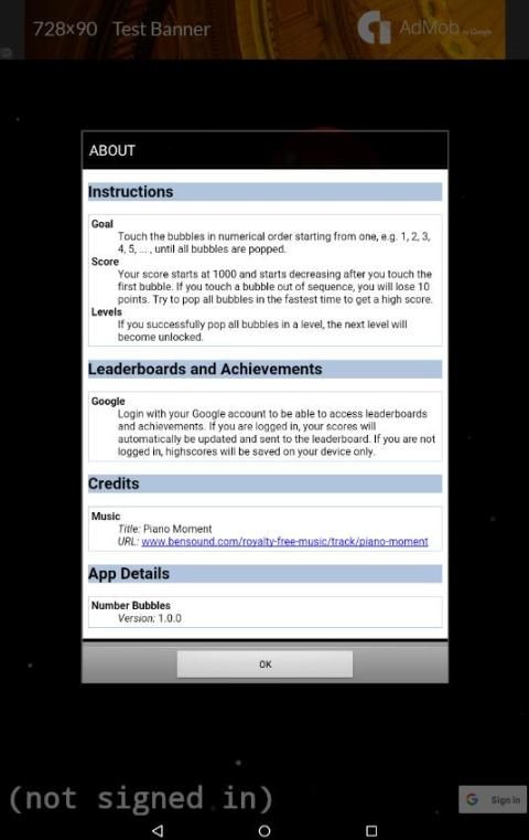 • المتصدرين والإنجازات: تسجيل الدخول باستخدام حسابك في Google لتكون قادرة على الوصول إلى المتصدرين والإنجازات. إذا قمت بتسجيل الدخول، سوف يتم تحديثه تلقائيا علاماتك وإرسالها إلى المتصدرين. إذا كنت لم تقم بتسجيل الدخول، سيتم حفظ نسبة عالية من الأصوات على جهازك فقط.