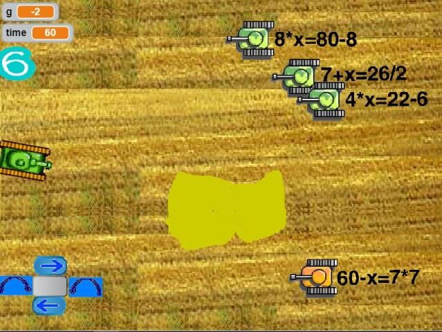 هذه هي لعبة حول المعادلات-متغير واحد. الصف السادس حيث أننا حقا البدء في القيام الجبر الفعلي. يتم إنشاء هذه اللعبة لمساعدة الطلاب من الصف 6 إلى حل سريع equations.In هذه اللعبة يحاول الطالب للدفاع عن أراضيها ب 'دبابات ضد دبابات العدو. كل دبابة العدو له وراء ذلك على المعادلة متغير واحد مع مجهول س. في الجانب الأيسر من الشاشة نرى الرقم الذي ربما هو الحل لبعض المعادلات. علينا أن نجد معادلات المقابلة وتدمير الدبابات. إذا كنا تدمير دبابة الأيمن، ثم نأخذ 1 نقطة لكل خزان الصحيح. إذا كان الطالب يدمر دبابة الخطأ ثم خسر 1 نقطة. إذا دبابة العدو اللمسات خزان الخاص بك، فإنك تفقد 1 نقطة. لأسفل على الجانب الأيسر من الشاشة ترى بعض الأزرار مع الأسهم للتحرك، يمينا أو يسارا للدبابات وضرب. شخصية مضحكة (مساعد في اللعبة) يساعد الطالب لقواعد اللعبة. في النهاية، وفقا لأدائك، يمكنك الفوز 1-5 النجوم. تكسب 1 نجمة (نقطة <0)، 2 نجمة (0 20). تظهر نقاط مع مؤشر ز على الجانب الأيسر من الشاشة. انتهاء المباراة بعد 5 دقائق (300 ثانية). يظهر الوقت على الجانب الأيسر من الشاشة. هذه هي لعبة مضحك التي تعزز المهارات في المعادلات-متغير واحد. مع هذه اللعبة نساعد الطلاب على ممارسة المعادلات. ونعتقد أن هذه اللعبة هي مورد المنهج التربوي للمعلمين وأولياء الأمور والأطفال.