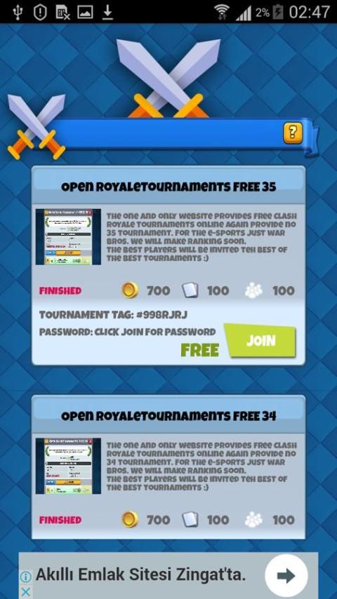 9Apps خدمة لتطبيقات اندرويد مجانا 20,000+ مستحدمين يحملون Open Royale Tournaments احدث الاصدار مجانا كل أسبوع في تتمتع في استخدام هذا التطبيق في الموبايل..9Apps هذه التطبيق الحلوووه تصدر في 2016-12-27 هيا بنا،وقم بتحميل التطبيق الآن..