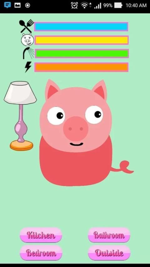 سوف تكيف الحيوانات الأليفة حيث عليك أن تأخذ العناية بها. عليك أن تفعل ذلك بطريقة سليمة بحيث woudnt يكون متعبا. يمكنك التفاعل معها عن طريق تغذية، والغسيل، وجعلها النوم والخروج من المنزل. على العالم الخارجي، وهناك 3 مباريات مصغرة من شأنها أن تزيد سعادة الخنزير.