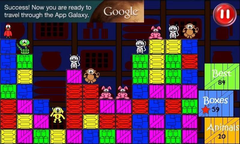 Its a simple game where you click matching boxes to remove them and save the animals. To win, you need to get all the animals down, some need to be lower than others. To get the best score you continue to remove boxes until there are none left or you can't remove any more. There are 3 levels to play. The easiest is ideal for kids, medium for older kids and adults and hard for the really determined.