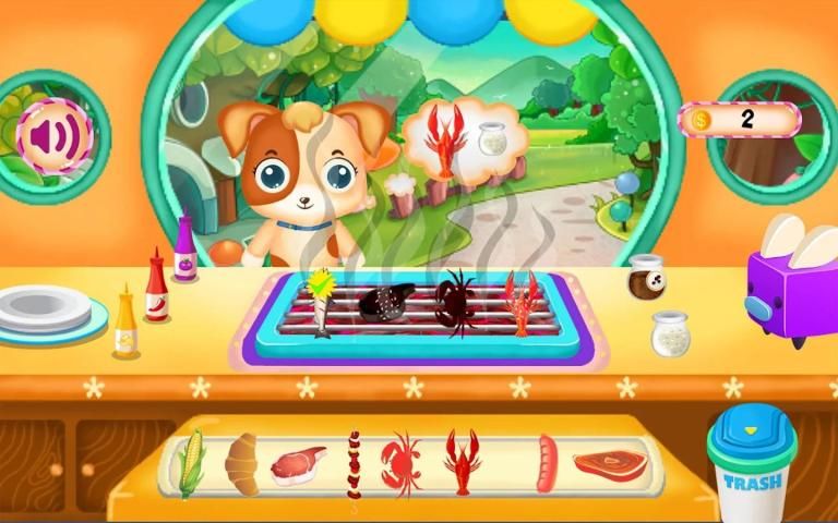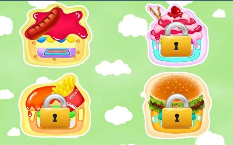 - 4 types of food to play: Barbecue, burger,potato chips, ice creams