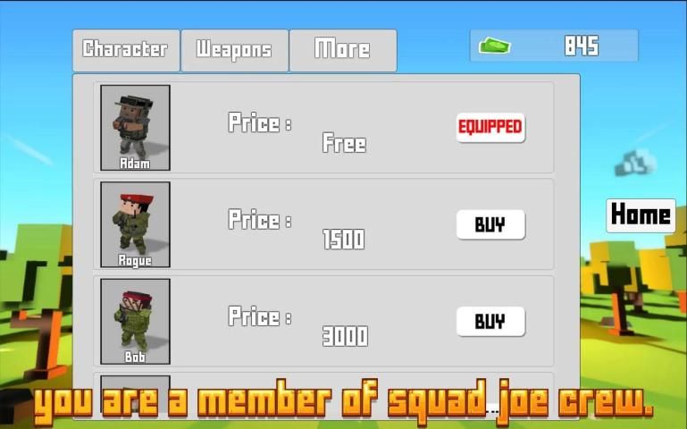 • خيارات واسعة من الأسلحة، مثل كولت، الثقيلة مدفع رشاش، AK47، MP5، وغيرهم كثير من طاقم المنتخب جو.