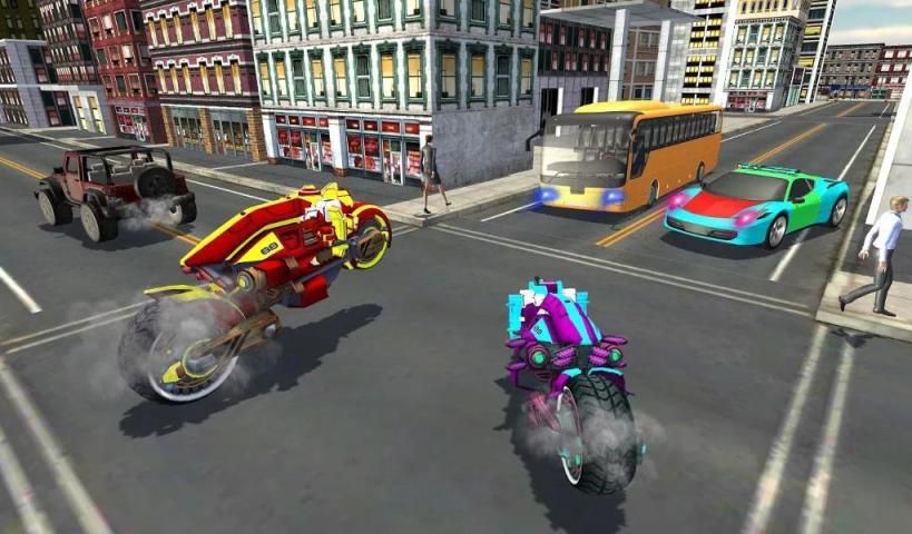 تبدأ الحرب! احصل على استعداد للهجوم عن طريق اللعب تحلق الدراجة الروبوت، إضافة إلى 3D الدراجة تحلق ألعاب الروبوت. الناس، سيكون لدينا تراكم مذهل للألعاب الروبوت والألعاب النارية تعطيك ملؤها المرح والترفيه التي ملفوفة بدقة في حزمة واحدة، طائرة روبوت الدراجة محاكي.