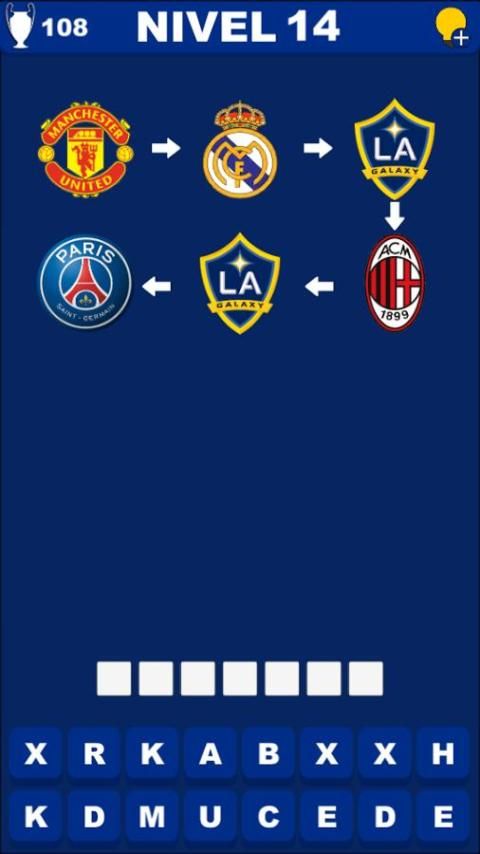 انها بسيطة، لديك لمعرفة الأندية التي تظهر على الشاشة وتخمين أي لاعب لعبت في كل منها. مع مستويات 190 هذه اللعبة سوف اختبار أفضل اللاعبين التخمين اللاعبين الحالي والتاريخي retirados.¿Cuántos سوف تكون قادرة على الاعتراف؟