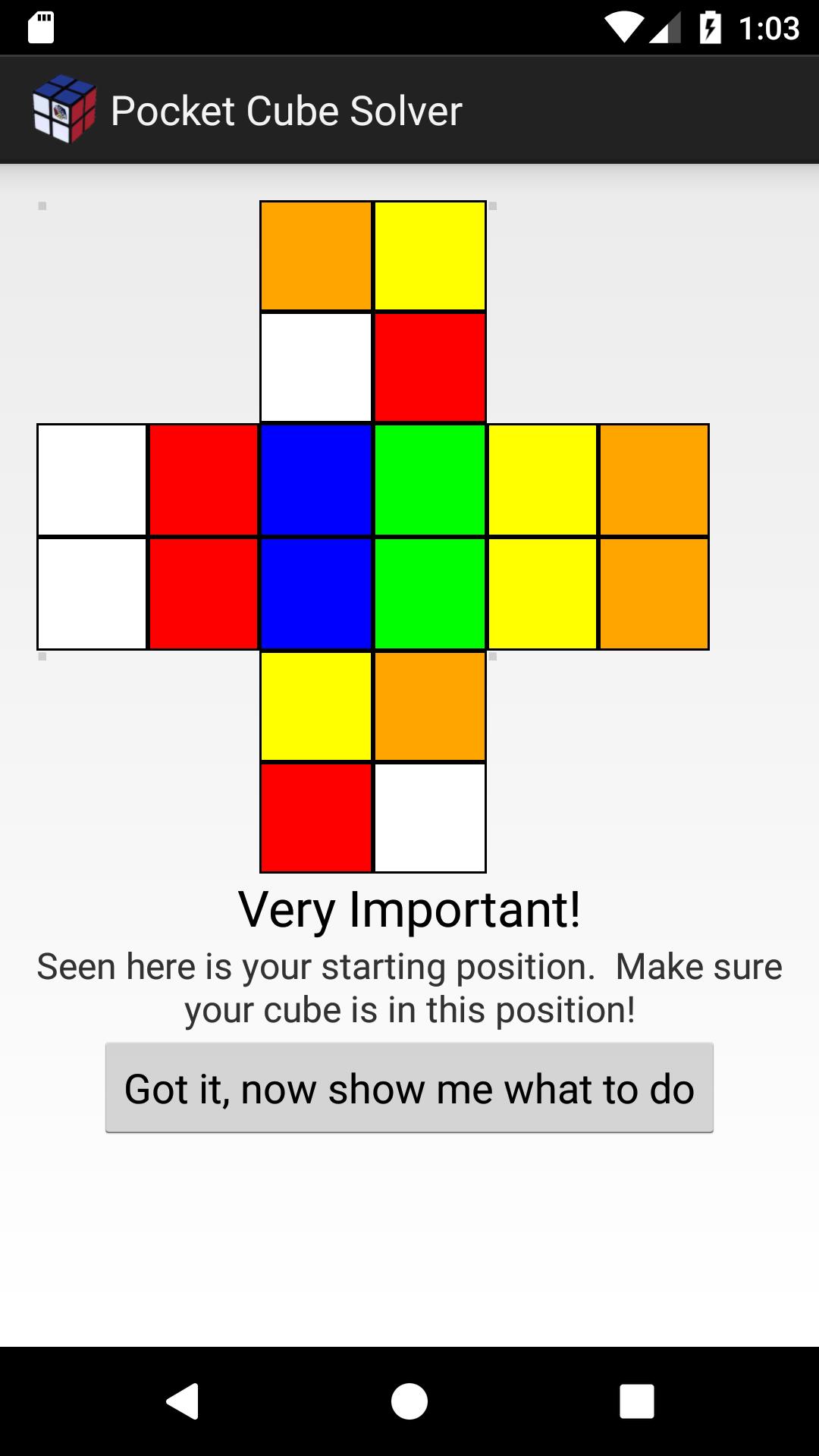 This app is for anyone who wants to solve the 2X2 Cube, also known as the pocket cube.