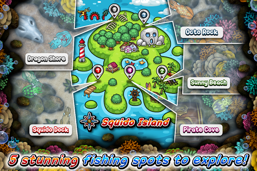 هدفك النهائي هو التقاط جميع أنواع البحرية الحياة في بحر جزيرة Squido واستكمال مجموعات كتاب الأسماك و Treasurepedia.