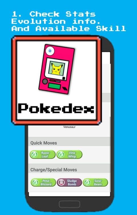 - تحقق احصائيات، وأنواع، والمهارات المتاحة لالبوكيمون