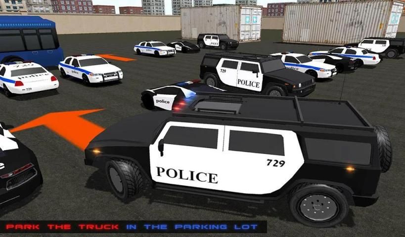 قيادة حافلة للشرطة وشاحنة 4X4 في منطقة دائرة انتخابية وقوف السيارات الفناء الخلفي. تحميل لعبة الشرطة لتعليم القيادة اختبار 3D مجانا في مخزن اللعب جوجل وحظا سعيدا لاجتياز تدريب الشرطة.