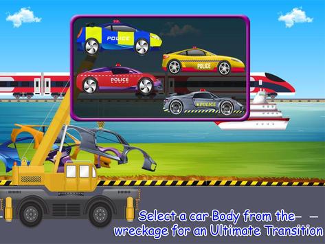 وتنقسم هذه اللعبة إصلاح السيارة في مختلف متعة ومذهلة مستويات مثل غسل، وإصلاح، وتحديد وتصميم، أولا وقبل كل الاطفال سيكون لديك لاختيار سيارة حطام بين مختلف سيارات الشرطة القذرة وفوضوي غير مجدية في التخلي عن المرآب بعد أن الجزء الممتع يبدأ في ورشة لاصلاح الشرطة ميكانيكي سيارات، حيث يتم توفير جميع الأدوات السيارات الطبيب. لذلك، يتيح كونها مغامرة.