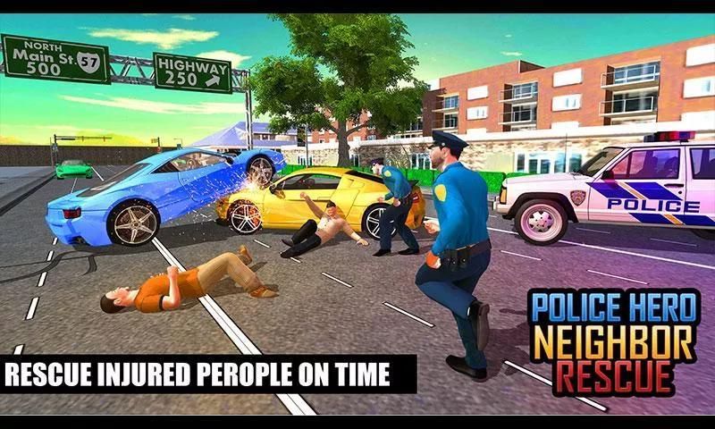 بطل الشرطة الجار الإنقاذ لديها مهمة الإنقاذ الصعبة التي يمكن أن يتحقق إلا إذا كنت بطلا الشرطة عاطفي. الشرطة هو البطل الحقيقي البقاء على قيد الحياة من الناس. التسرع في إنقاذ الأشخاص الذين يعانون إصابات في شوارع المدينة الجيران ونقلهم الى المستشفى لبقائهم على قيد الحياة الآمنة. محرك سيارة إسعاف الشرطة بسرعة حقيقية. تجنب حادث سيارة مع حركة المرور تسير على الشارع. يدع شيئا ضابط شرطة آخرين فوز قلوب الناس. كن بطلا الشرطة النهائي الذي يخشى أحدا! كونه بطل السوبر الجار المنقذ تظهر ملحمة القتال العمل حيلة، وجعل أفضل استخدام العصا وتظهر المجرم واللصوص، يمكن للشرطة تذهب إلى أي متطرفة من أجل البقاء الجار. هجوم وقتال مع قوة عظمى مذهلة ودعونا الانتهاء من معدل الجريمة في العمل وليس صحيحا عبة القتال عام 2017 بطل الشرطة الجار الإنقاذ.