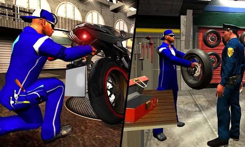 إصلاح وإصلاح أجزاء مختلفة من الدراجات النارية للشرطة في أقصر وقت ممكن عن طريق أداء وظيفة صعبة كما ميكانيكي دراجة نارية الحقيقي للمدينة الكبرى. تحديد دراجة الشرطة الثقيلة يمثل تحديا قليلا ولكن المثير للاهتمام في نفس الوقت. كن محترف في مهارات إصلاح آلة الدراجة الخاصة بك وتقديم أفضل الخدمات إصلاح الدراجة الخاصة بك في الدراجات النارية ورشة ميكانيكي المرآب. تعديل الدراجات الشرطة كما هو الحال في لتحقيق أقصى قدر من الأداء محرك الدراجات النارية. وتشمل الدراجة وظيفة ميكانيكي محرك الدراجات النارية إصلاح، stickering، سمكرة الدراجات النارية، وتغيير العجلة، وتحديد الضوء، وظيفة الطلاء الدراجات النارية، وخدمة غسل الدراجة. مرة واحدة الدراجة الشرطة يحصل على إصلاحه الذهاب لمطاردة سيارة الجنائية والتدمير بشكل كامل. يحمل المثيرة الدراجة القصوى أثناء القيادة الدراجات النارية الخاصة بك على الطرق واسعة من المدينة الكبرى كما شرطة الحقيقي موتو شرطي في أفضل الدراجة ميكانيكي محاكاة للعام 2017.