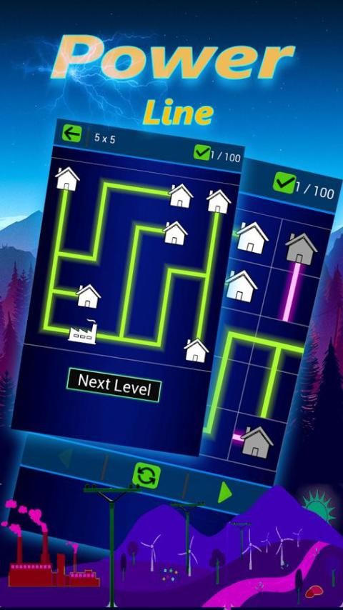 ربط جميع المنزل لمصنع الطاقة باستخدام مسة إصبع على الشاشة لتدوير خط والسماح تدفق الكهرباء إلى جميع المنازل.