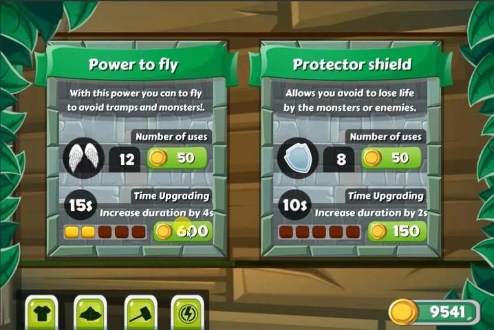 تسلق، والسباحة، والقفز الجدران وتطير لتجاوز المستويات. شراء الأقواس والسيوف والمطارق والمقاليع لقتل الأعداء أكثر سهولة وشراء الملابس الجديدة لتبدو أفضل، وكأنه بطل، رعاة البقر، النينجا، السلطة الحارس، القراصنة، وغيرها الكثير ....